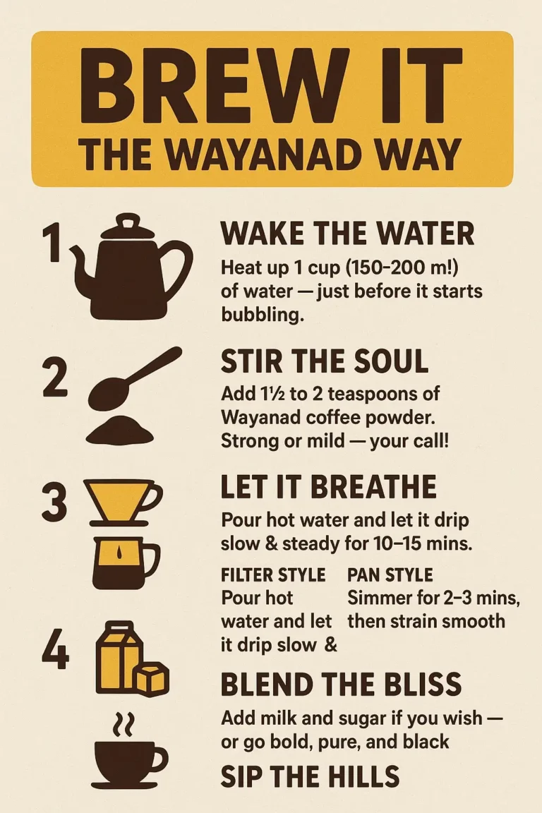 Take a slow sip… feel the mist, the aroma, the taste of Wayanad in every drop.